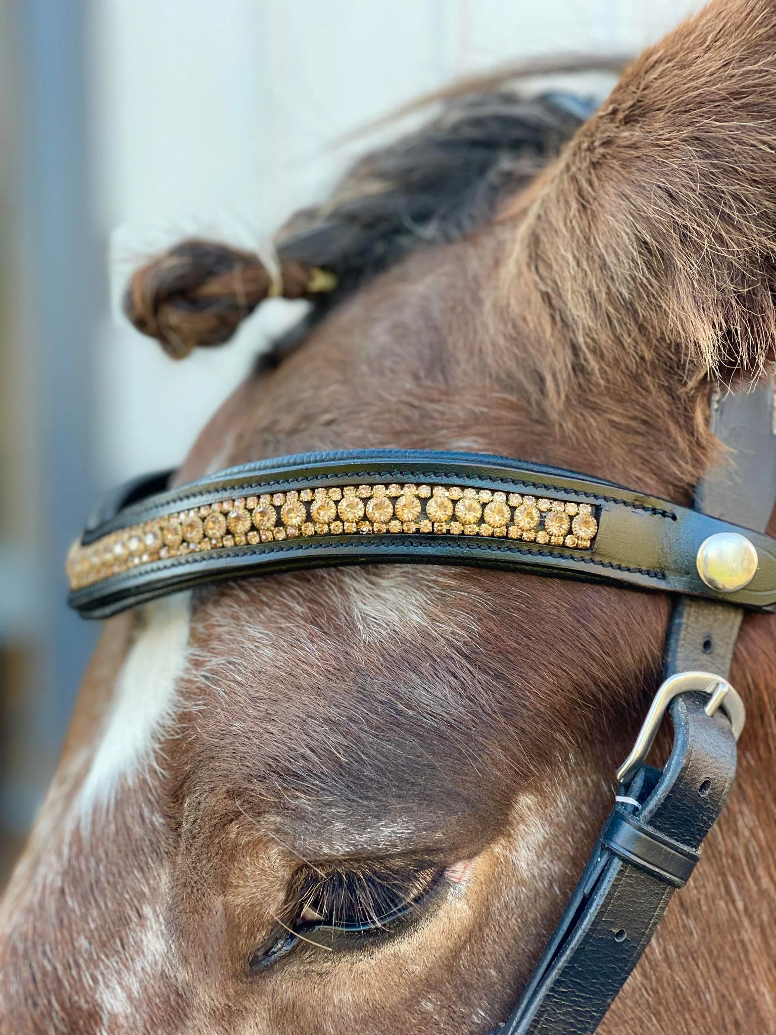 Check out our gorgeous Snap-Out Browband Collection for your Bridles! Designed with sparkling crystals in a variety of captivating colors, these browbands add a touch of glamour and sparkle to your tack! Don’t like all the dazzle? Don’t worry we have our elegant Classic Leather Browbands without the gems too. These Browbands Snap-Out almost instantly! You can even Snap-Out your browband while the bridle is on the horse. It’s that easy! With these interchangeable browbands you can match your riding outfit or tack easily. Maybe you’re going to a show then the next day a trail ride or Photoshoot. Quickly Snap-Out your Browband with no hassle or time. Choose from our wide collection below!
