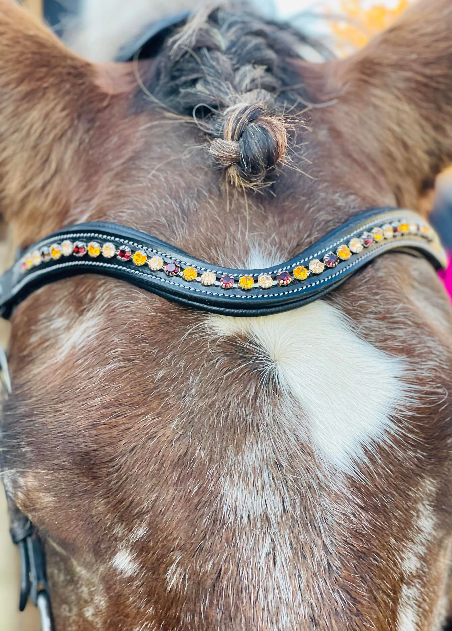 Check out our gorgeous Snap-Out Browband Collection for your Bridles! Designed with sparkling crystals in a variety of captivating colors, these browbands add a touch of glamour and sparkle to your tack! Don’t like all the dazzle? Don’t worry we have our elegant Classic Leather Browbands without the gems too. These Browbands Snap-Out almost instantly! You can even Snap-Out your browband while the bridle is on the horse. It’s that easy! With these interchangeable browbands you can match your riding outfit or tack easily. Maybe you’re going to a show then the next day a trail ride or Photoshoot. Quickly Snap-Out your Browband with no hassle or time. Choose from our wide collection below!