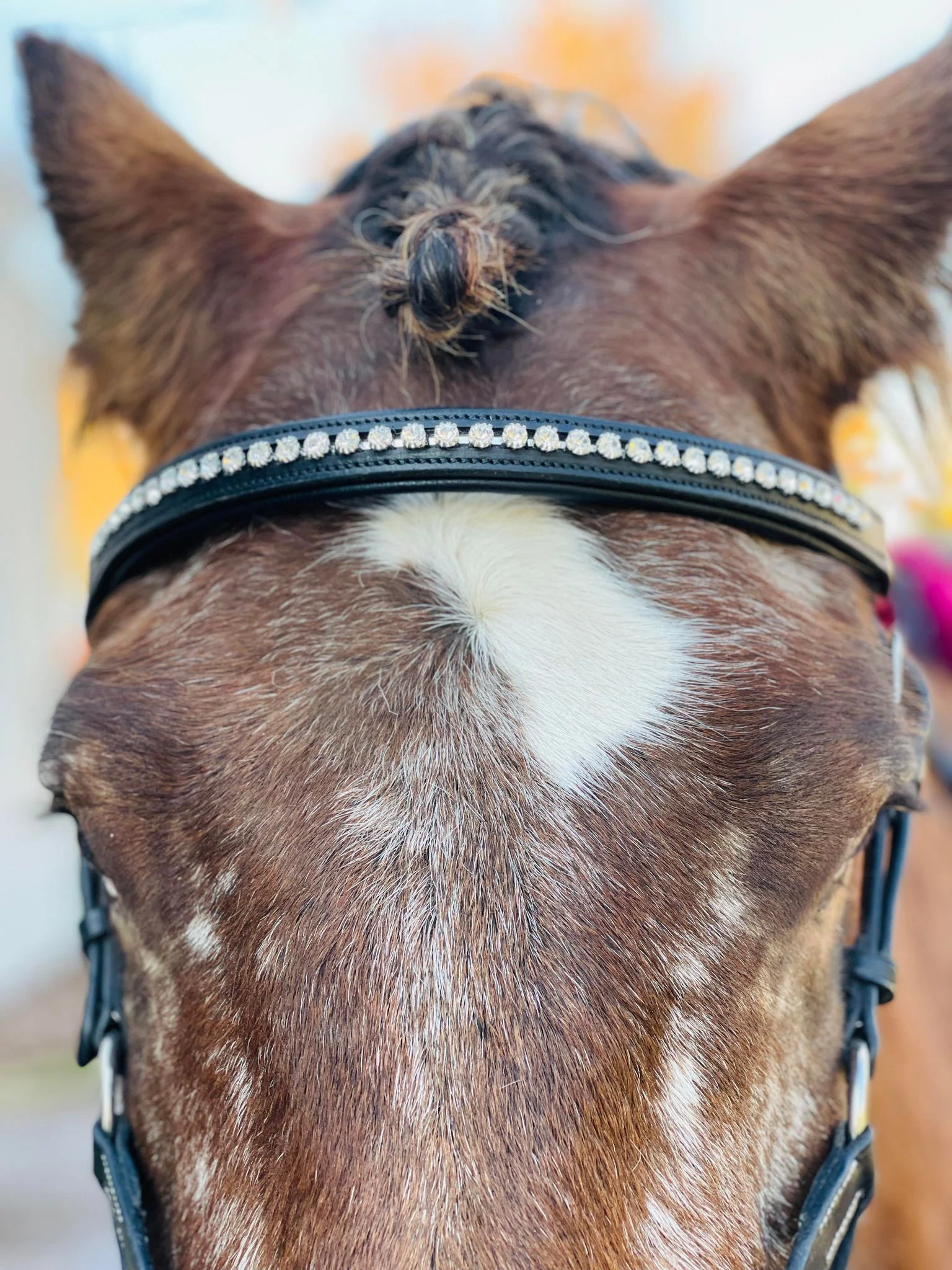 Check out our gorgeous Snap-Out Browband Collection for your Bridles! Designed with sparkling crystals in a variety of captivating colors, these browbands add a touch of glamour and sparkle to your tack! Don’t like all the dazzle? Don’t worry we have our elegant Classic Leather Browbands without the gems too. These Browbands Snap-Out almost instantly! You can even Snap-Out your browband while the bridle is on the horse. It’s that easy! With these interchangeable browbands you can match your riding outfit or tack easily. Maybe you’re going to a show then the next day a trail ride or Photoshoot. Quickly Snap-Out your Browband with no hassle or time. Choose from our wide collection below!
