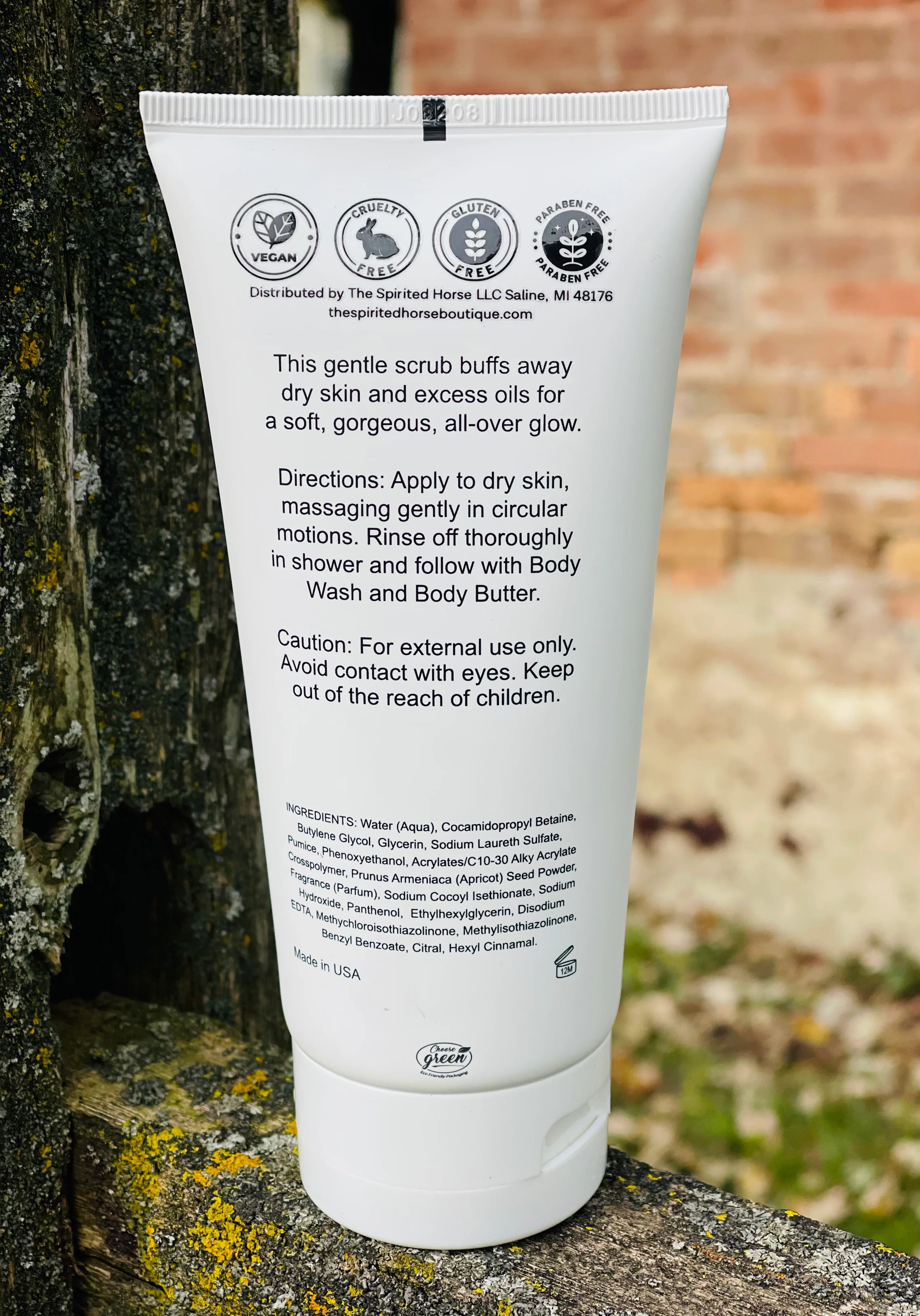 Introducing our LIMITED EDITION Winter Carriage Ride Equestrian Themed Body Scrub! The perfect addition to your equestrian self-care routine. Warm up from the winter cold with a shower and exfoliating scrub. With a Holiday Gingerbread scent, this invigorating and cleansing scrub will leave your skin feeling refreshed and rejuvenated. Formulated with all-natural pumice and apricot seed, it effectively removes dead skin cells, revealing a smoother and brighter complexion. Treat yourself to a spa-like treatment at home! Our Equestrian Themed Body Scrub is not only indulgent but also ethical. It is vegan, gluten-free, and paraben-free, ensuring a guilt-free and eco-friendly choice. Treat yourself with confidence, knowing that quality and sustainability go hand in hand.